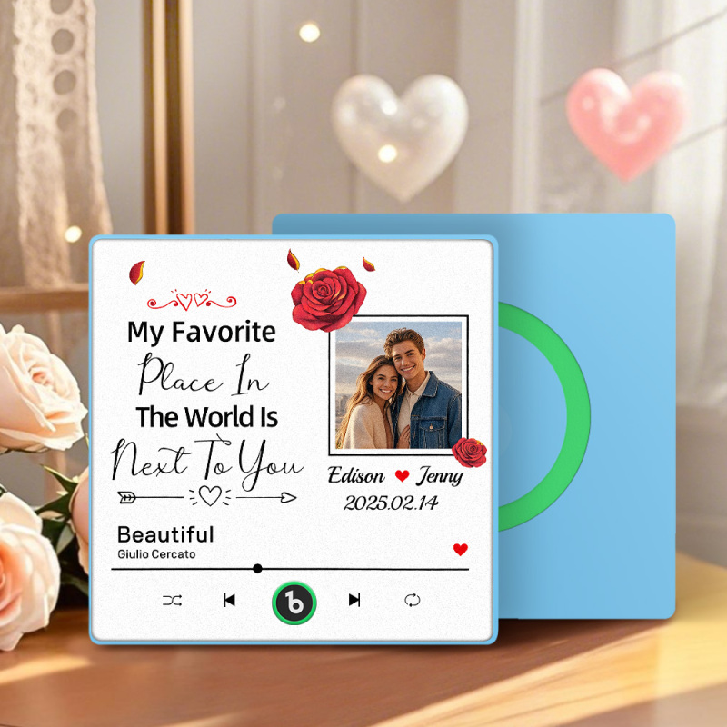 カスタム音楽冷蔵庫マグネット 花柄のパーソナライズ写真冷蔵庫マグネット 世界で一番好きな場所はあなたの隣です カップルへのギフト