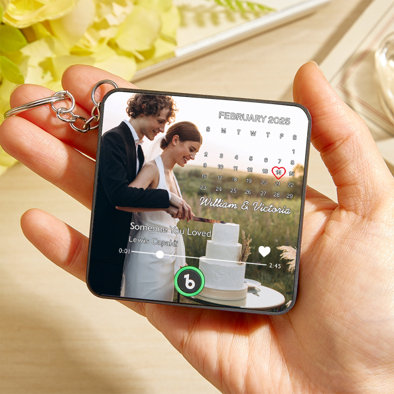 カスタムミュージックギフト ミニ冷蔵庫マグネットキーチェーン カスタム日付付き カスタムフォトオルゴール 曲再生 彼女への結婚祝い フォトミュージックマグネットキーチェーン カップルへの記念日ギフト
