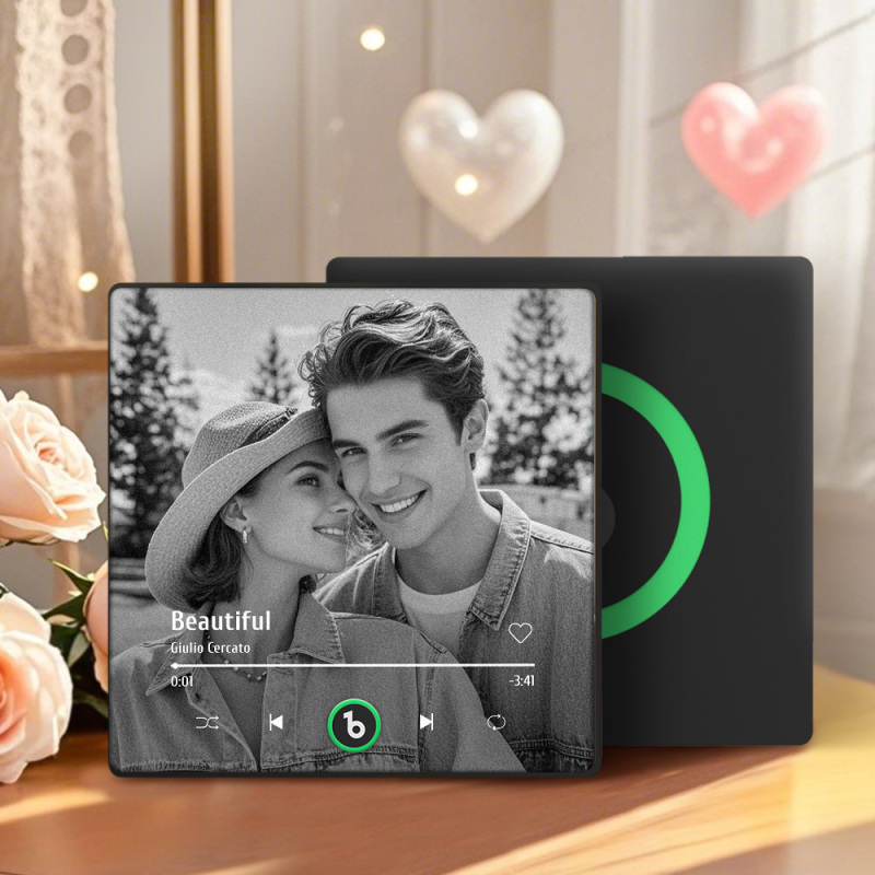 カスタムミュージックフォト冷蔵庫マグネット.携帯電話なしで音楽を再生できる,パーソナライズされた白黒写真ミュージック冷蔵庫マグネット.bluetooth接続対応.彼女への結婚祝いギフト.