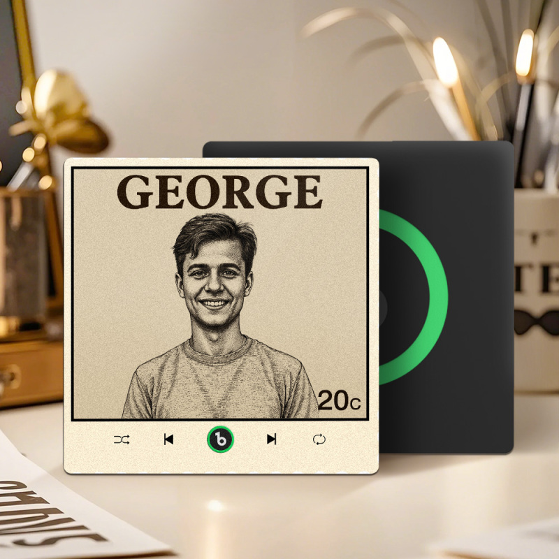 カスタムポートレート ヴィンテージスタンプ 音楽冷蔵庫マグネット パーソナライズされた写真名入り切手 音楽冷蔵庫マグネット 歌を再生できる彼へのギフト