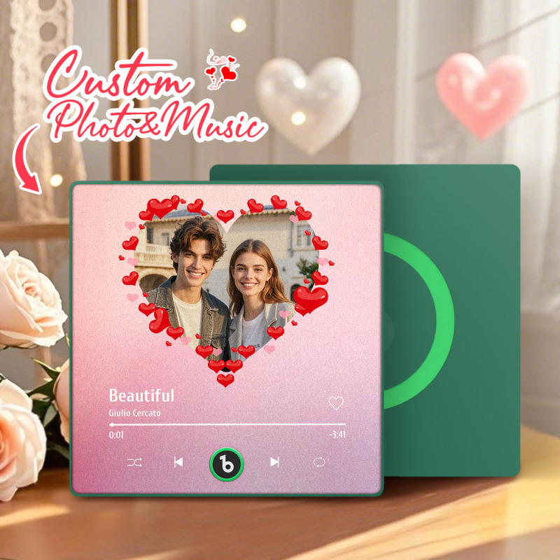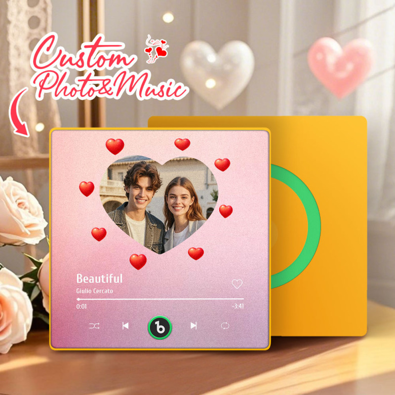 パーソナライズされた音楽冷蔵庫マグネット ハート ピンク バレンタインギフトアルバム 冷蔵庫マグネット 音楽壁フォトステッカー 音楽ムーブメント 再生可能 カップルへのギフト